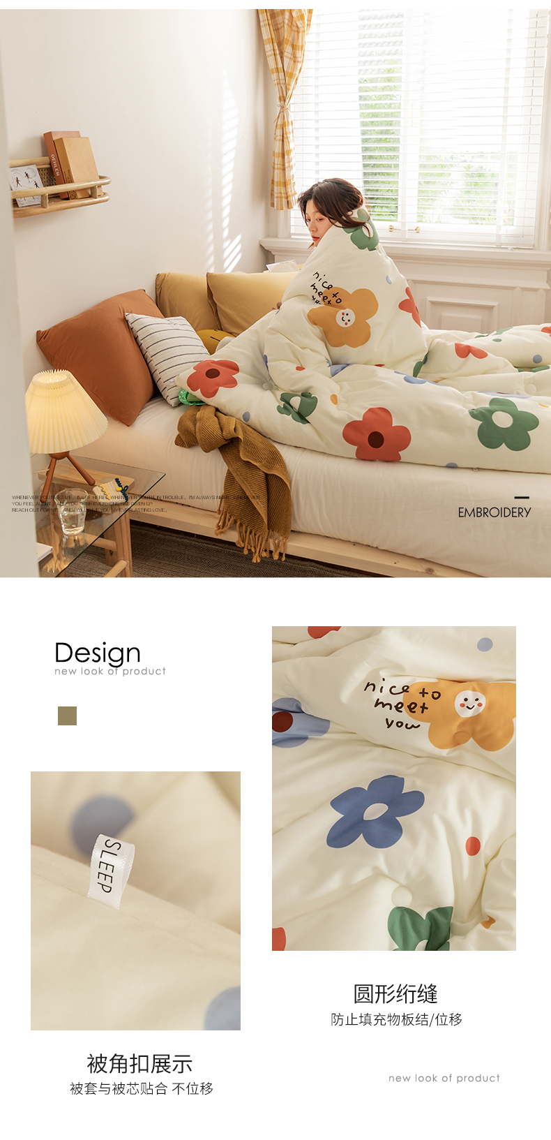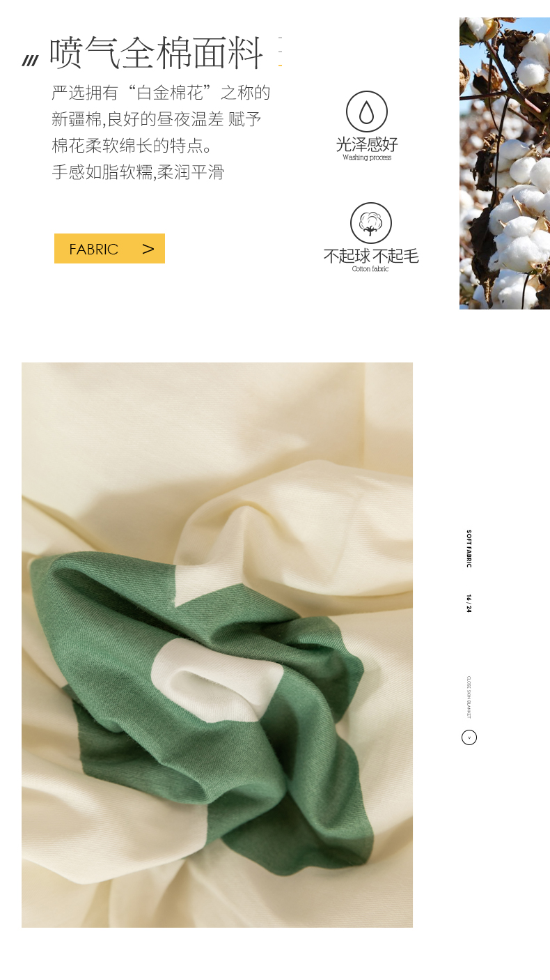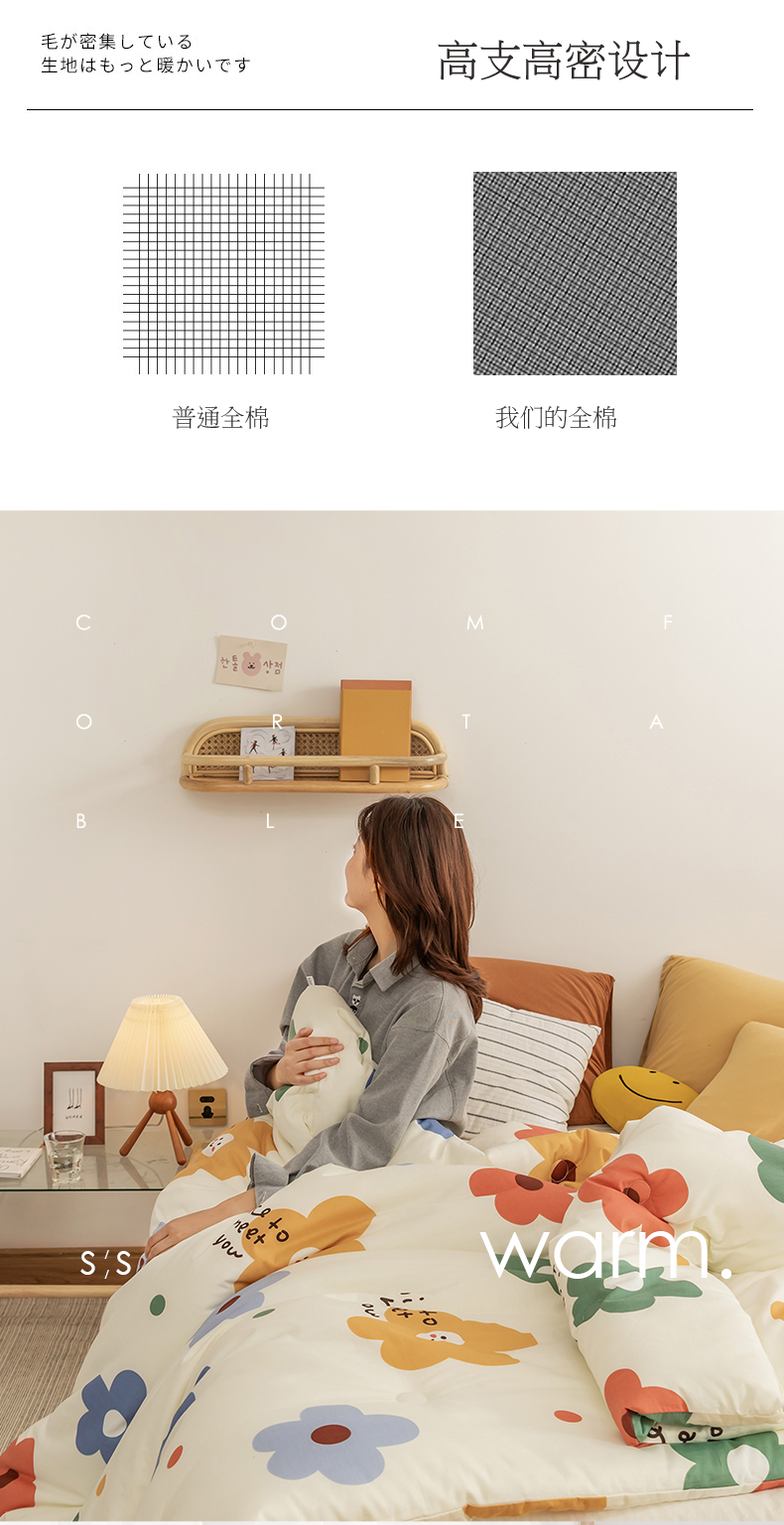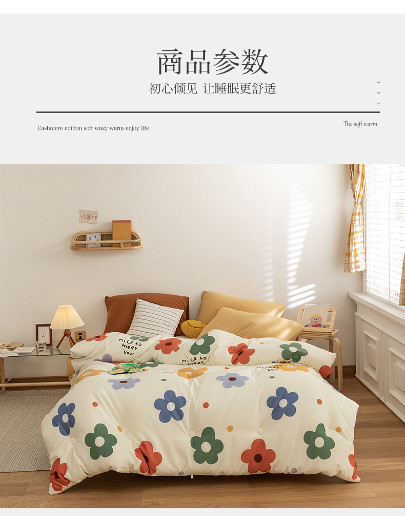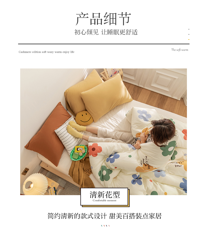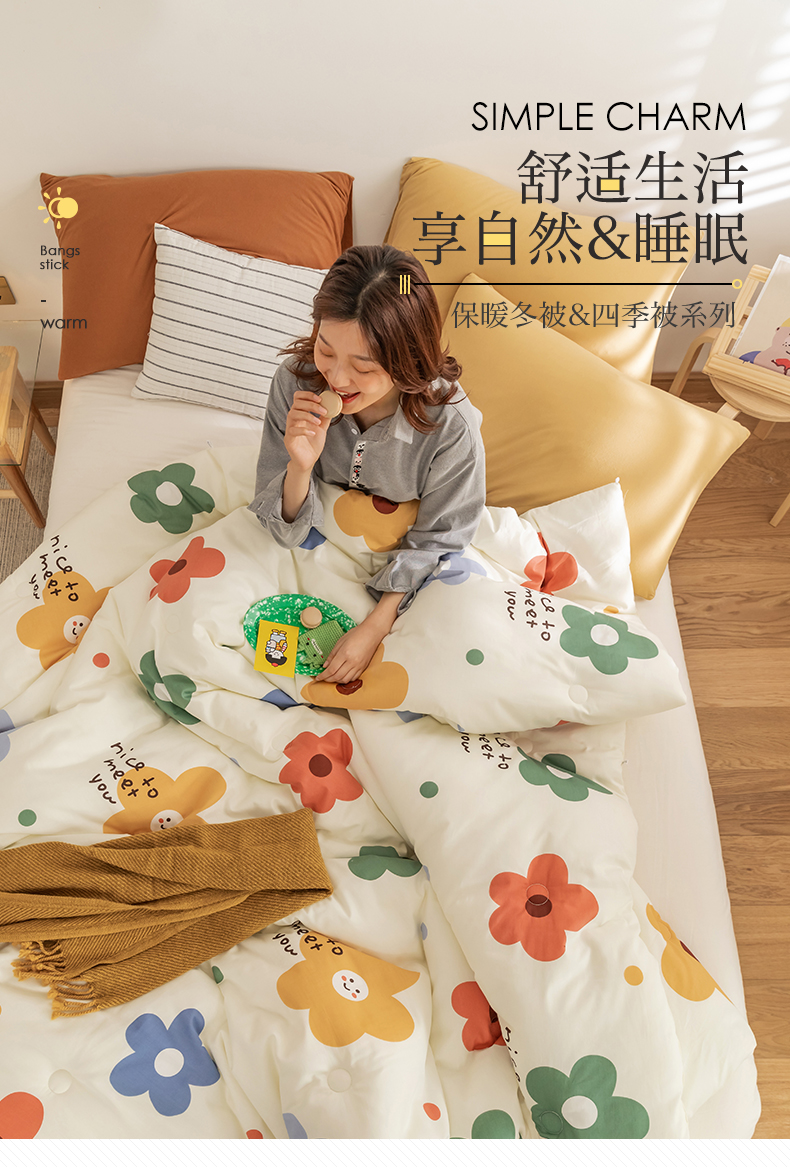 温暖娇肤 随心悦动 100%全棉面料 整张羽丝棉填充