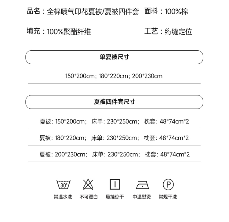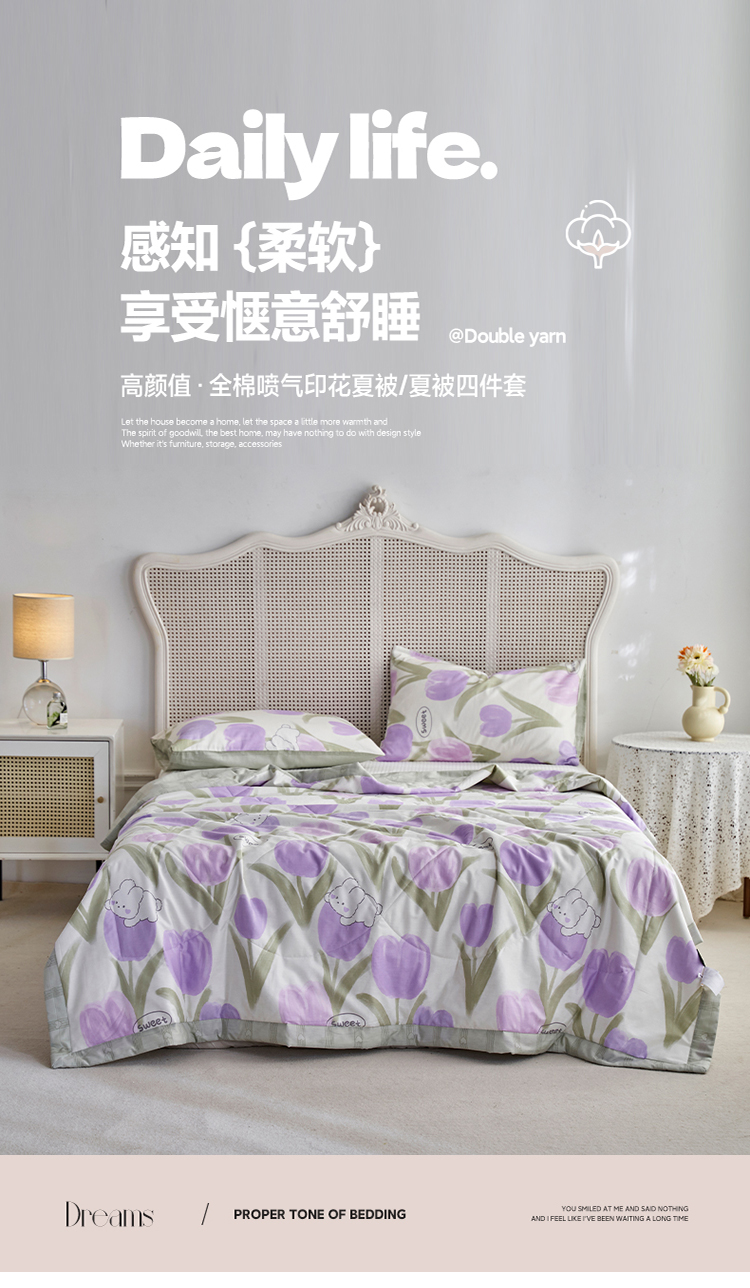 全棉喷气印花夏被四件套